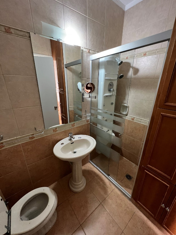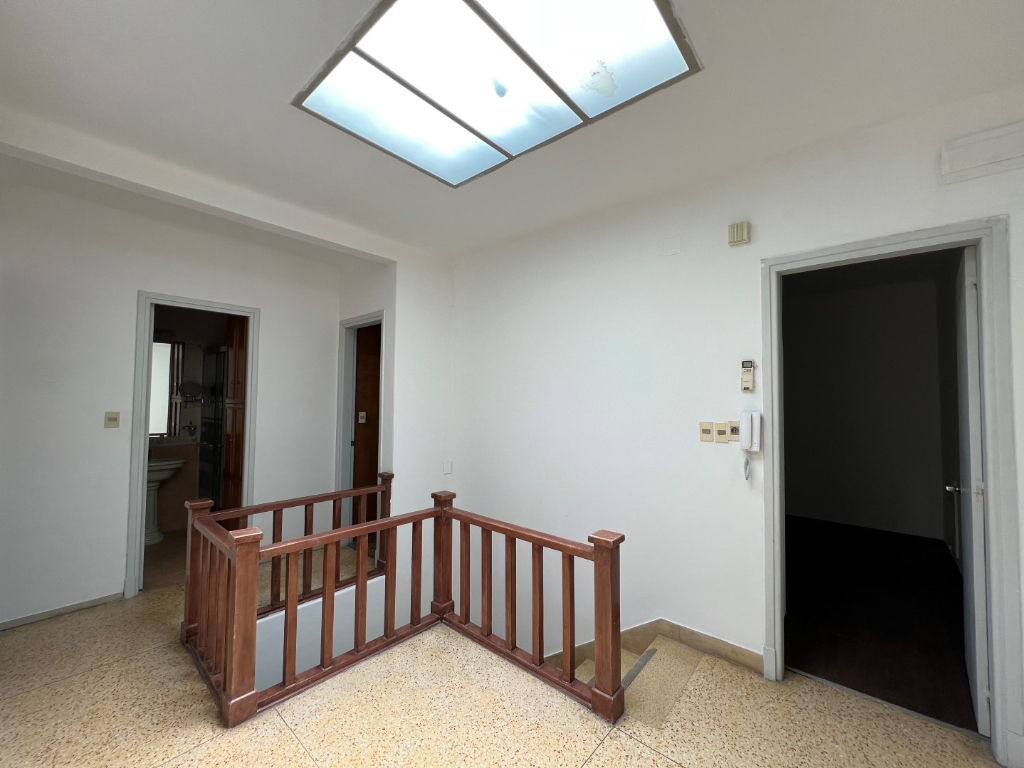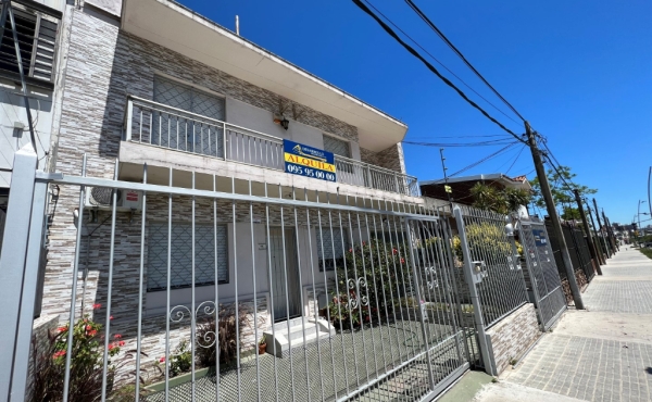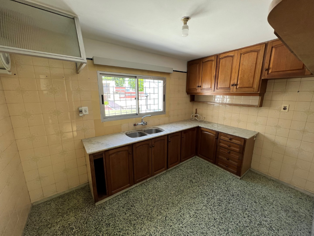 muy bien ubicada casa planta alta de 3 dormitorios, 1 baño, amplio living comedor con estufa a leña, hall de distribución, placares en dormitorios, cocina definida con oficie, placares alto y bajo mesada, gge para 2 autos pequeño y mediano, patio de uso exclusivo con parralliro, azotea para tender.-