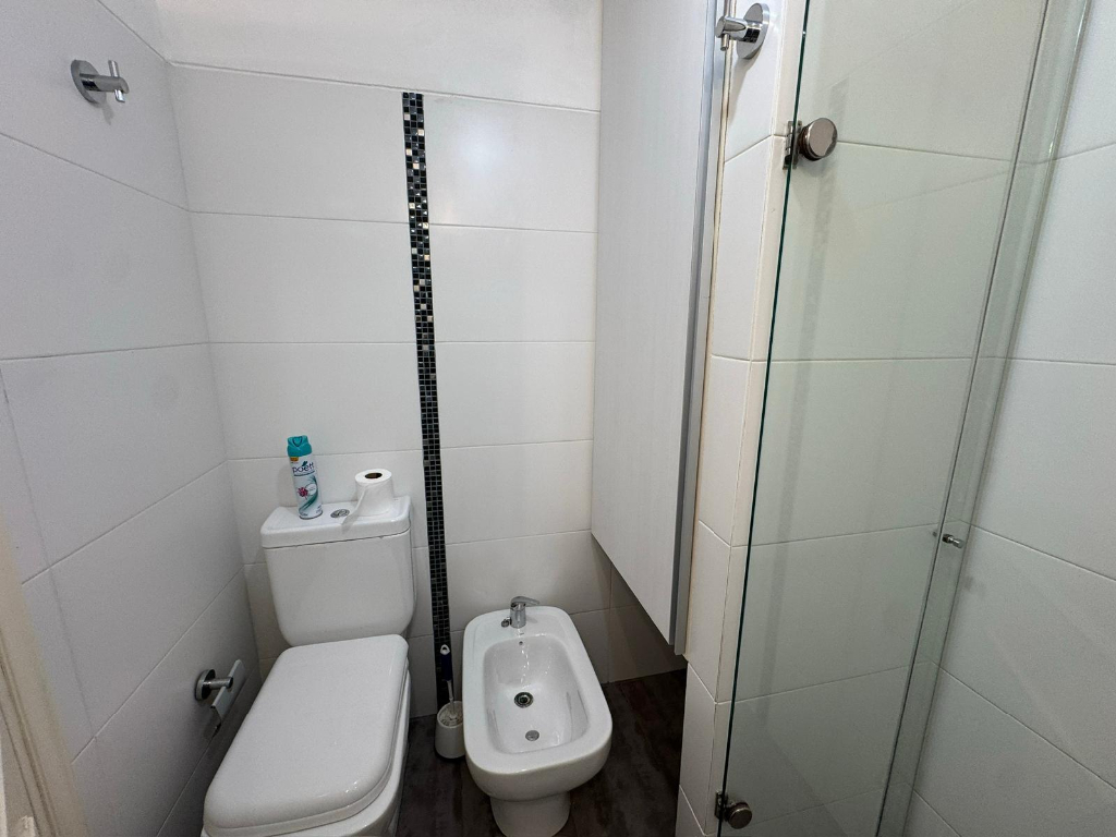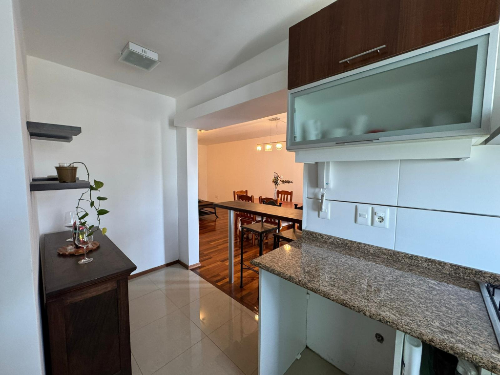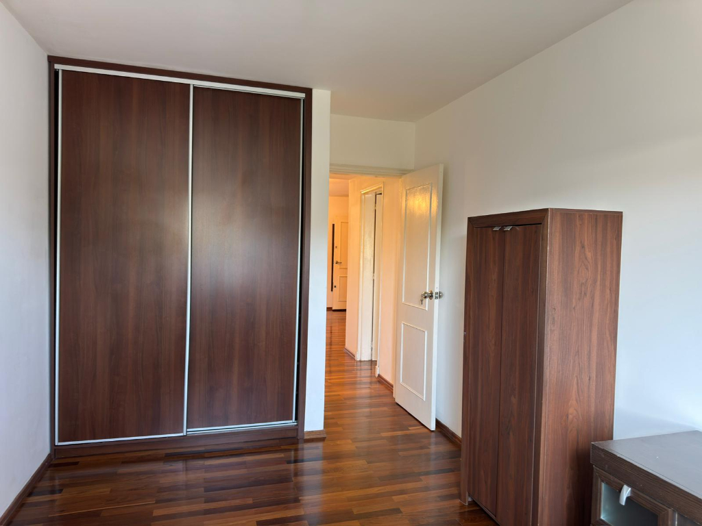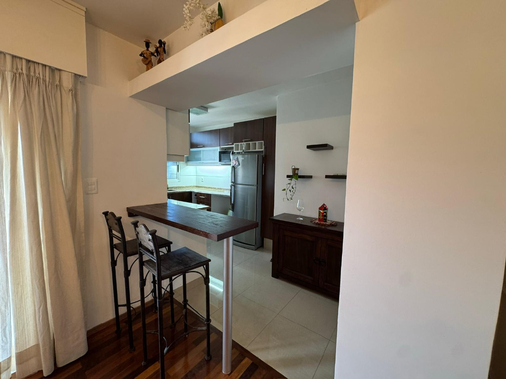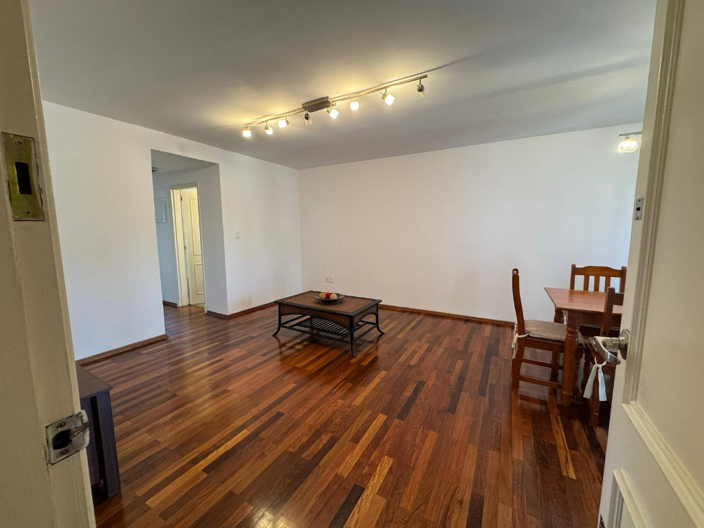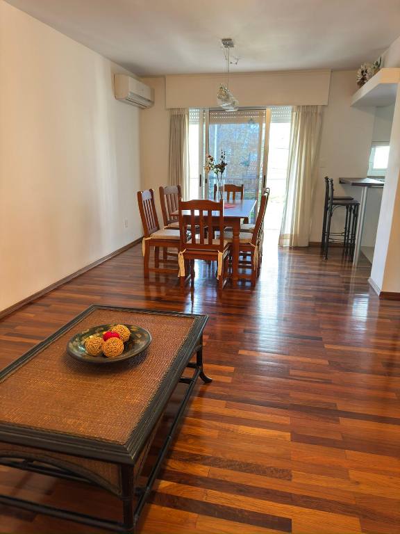 Unidad primer piso al frente, amplio living comedor con pisos de madera maciza, 2 Dormitorios con placares, 2 baños uno en suite, cocina con triple mesada, anafe, horno empotrado, placares alto y bajo mesada, balcones al frente, 3 aires acondicionados, cochera techada fija.