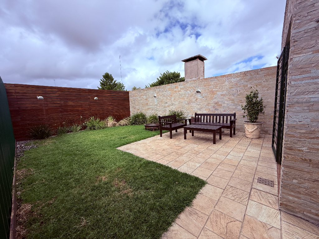 Excelente casa PH independiente desarrollada en una planta con 3 dormitorios, hall de distribucion amplio living comedor con cocina americana con horno y anafe empotrado, parrillero, calefaccion por estufa de alto rendimiento a pellet, aire acondicionado, baño con mampara de vidrio templado, lavaropa, calefon, patio interno con reja superior, patio con césped, rejas, Garaje cerrado y cochera abierta, Porton corredizo automatizado y mas. !!!